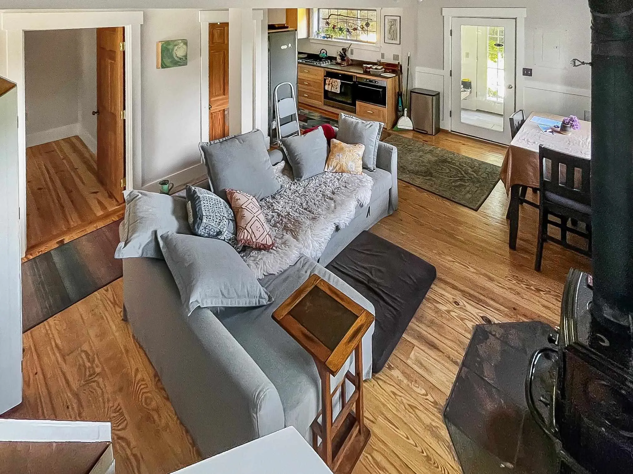 +"PublicRemarks": "Tucked into a lovely little neighborhood, this sweet Haines home sits on just over half an acre with a surprising sense of privacy while still being close to everything. With just under 1,000 square feet, the home includes 2 bedrooms, 1 bathroom, and a flexible bonus room that works well as an office, guest space, or whatever suits your needs. Inside, it has an easy, comfortable feel—hardwood floors, vaulted ceilings in parts of the home that bring in beautiful natural light, and a cozy wood stove that makes it feel like home the moment you walk in. An oil monitor heater provides steady, efficient warmth, and the arctic entry/mud room and bathroom feature electric in-floor radiant heat for an added touch of everyday comfort. The kitchen and bathroom have both been recently updated, giving the home a fresh, move-in-ready feel while still holding onto its original character. A metal roof adds to the low-maintenance appeal. Out back, a spacious deck offers the perfect place to enjoy the quiet setting, whether it’s a slow morning or a long summer evening. The detached shop/garage is a standout feature, complete with a brand new roof and a full second story that opens the door to future possibilities—additional space, a guest setup, or a dedicated workspace. The location is hard to beat—close to town, near the ferry terminal, and set in a neighborhood people truly love. It’s also easy to walk to many parts of Haines from here, something buyers consistently appreciate. It’s simply a lovely property that feels good the moment you arrive."