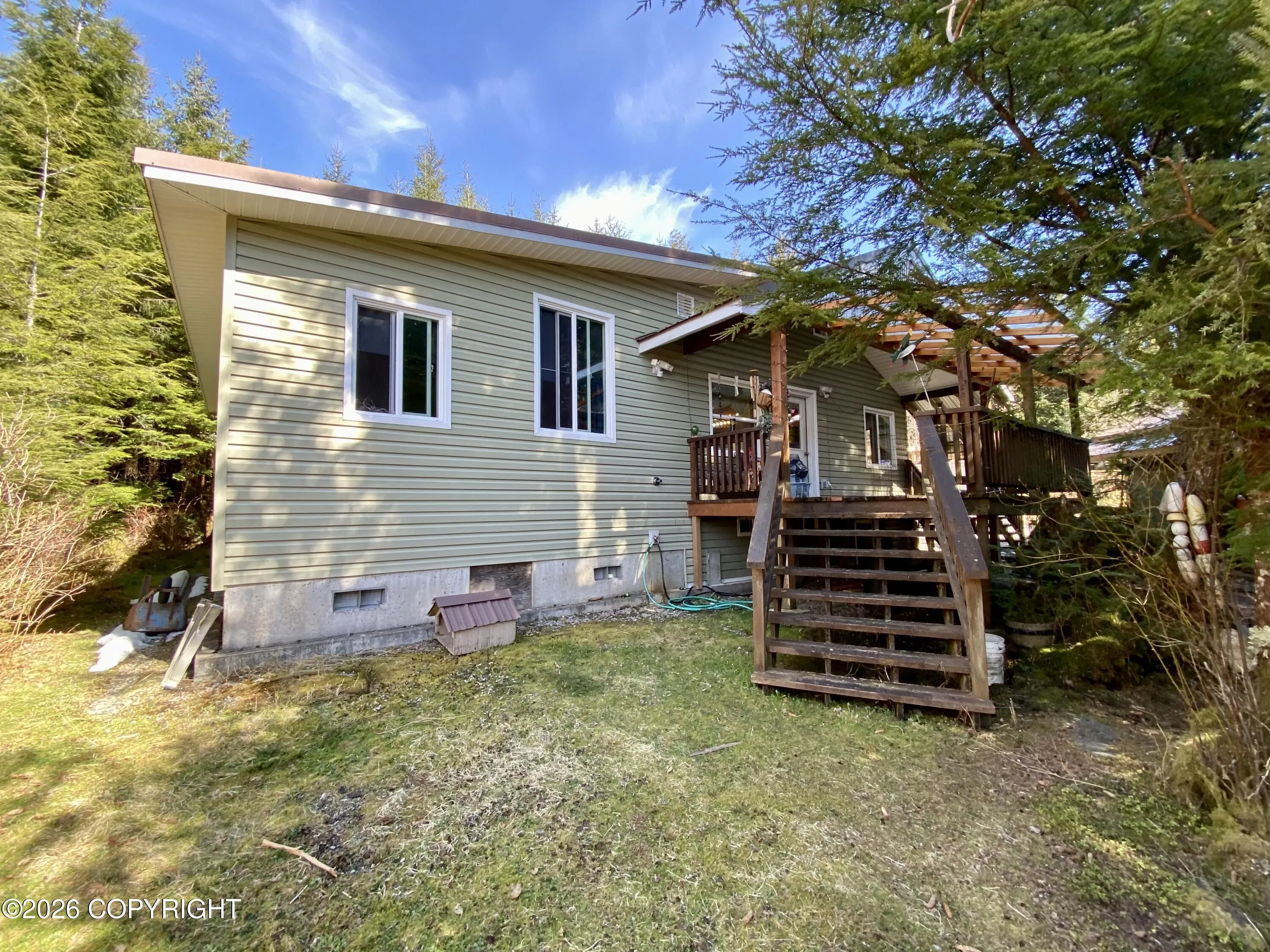 +"PublicRemarks": "Experience the best of Prince of Wales Island living with this exceptional property located at the quiet end of a cul-de-sac in the Mary Jackson subdivision. This 2-bedroom, 2-bath residence offers a seamless blend of comfort and natural beauty, featuring bamboo floors throughout and plenty of natural light. Designed for an Alaskan lifestyle, the home boasts expansive front and back decks covered with durable polycarbonate roofing, allowing for year-round entertaining on your private lot and a small fenced backyard for your pet. One of the property's standout features is the cedar sauna--your personal retreat after a day of world-class fishing, hunting or exploring on POW. Whether hosting visitors or seeking a private home office, the detached heated cabin has you covered. Renovated in 2025, it offers a kitchenette and private 3/4 bathroom, providing convenience and luxury while giving you the opportunity for additional long or short term rental income. Double driveways and a large graveled parking area allow for ample parking and vehicle storage. A newly built double carport is currently set to accommodate an RV or boat and the storage container (also going with the sale). Perfectly positioned close to schools, fuel, shopping, and the public harbor, this unique offering combines serenity with the convenience of city services. Do not miss this rare opportunity to own a meticulously cared-for property in Alaska's premier outdoor adventure location. No property tax!"