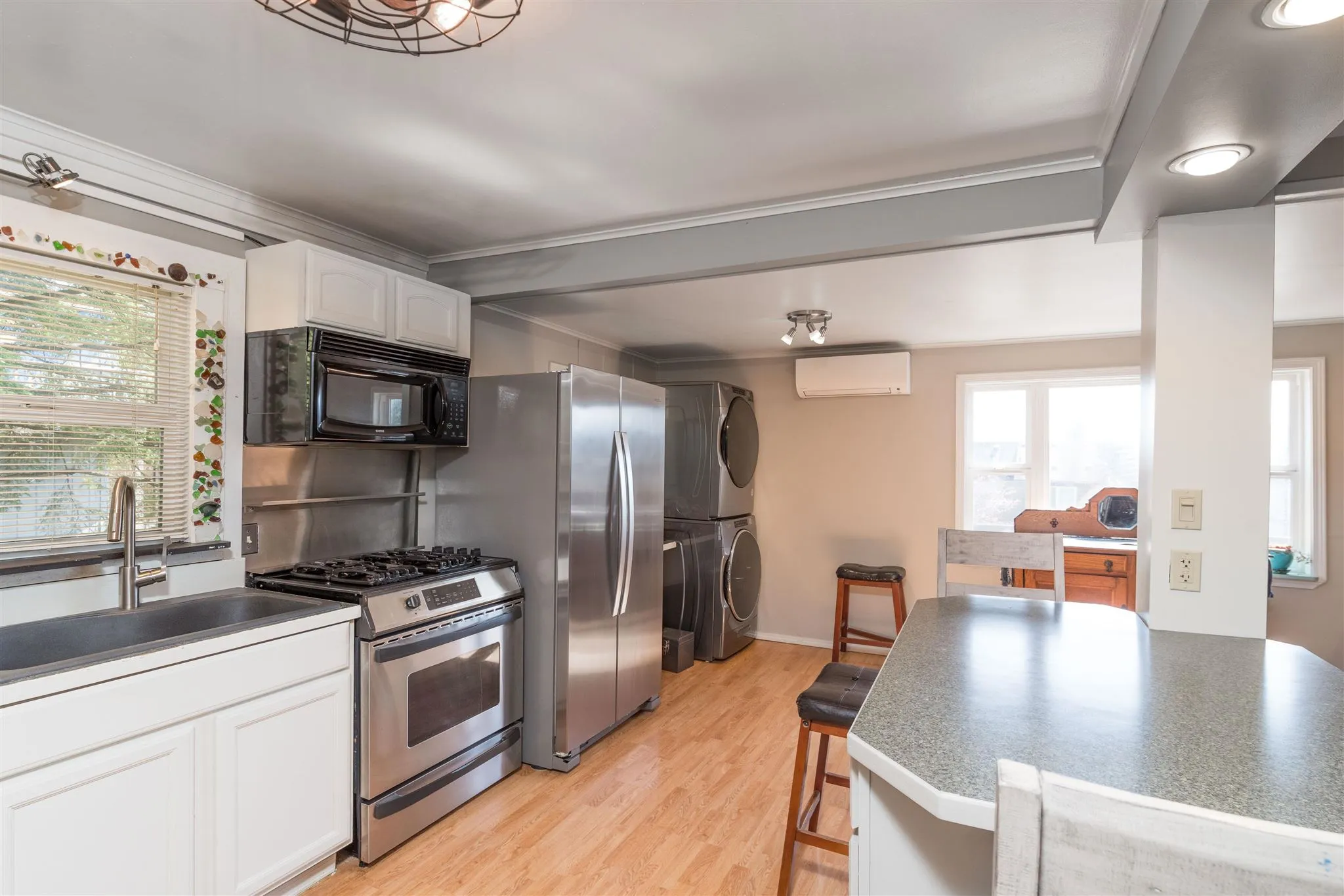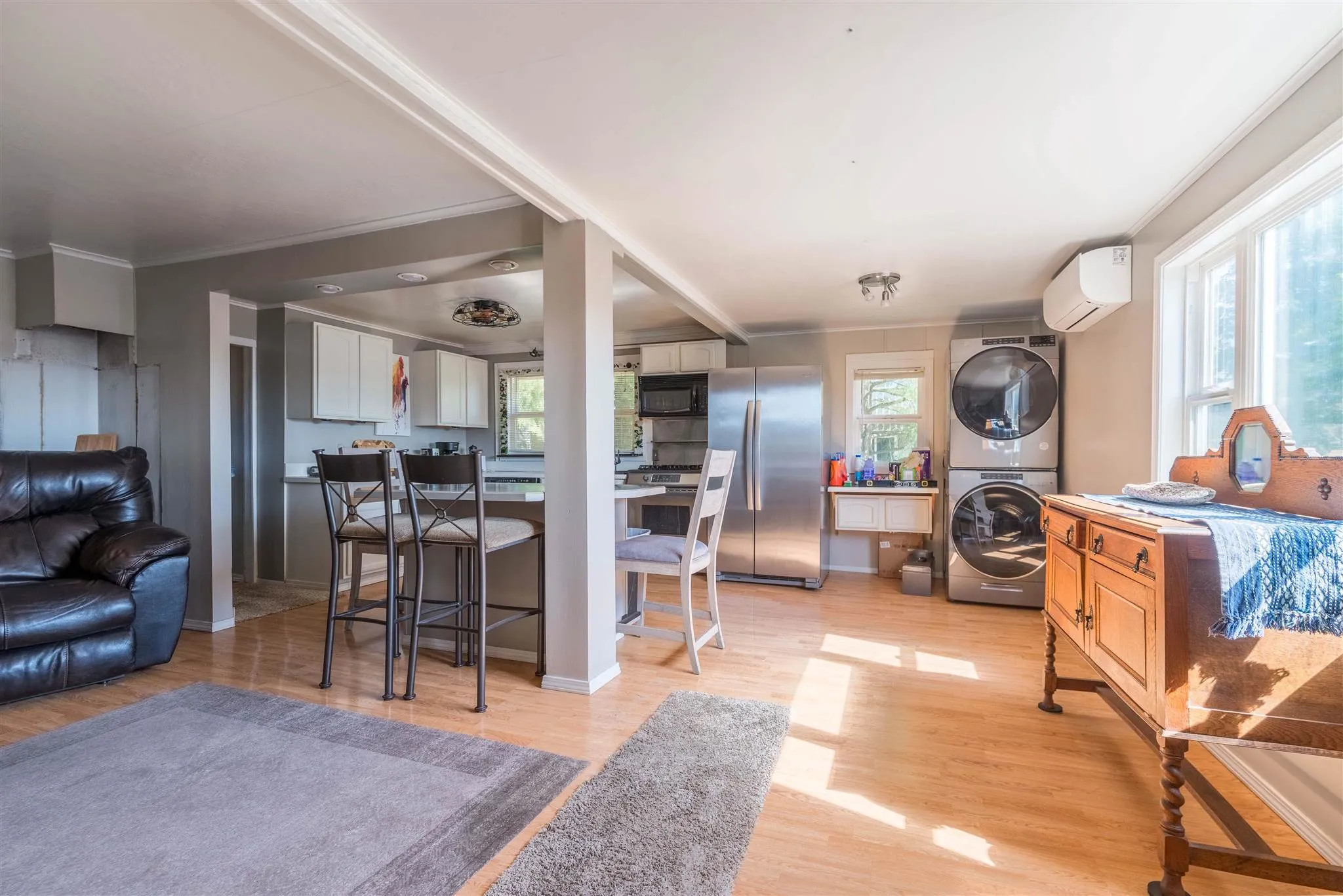 +"PublicRemarks": "Enjoy this Craftsman 2 bedroom, 1 bath home located conveniently close to shopping, schools, and the hospital. Remodeled approximately 10 years ago it is in great condition. Covered front walkway leads a front and back deck. The interior is compact and cozy with good natural light. The kitchen has a work island with seating and stainless appliances. Updated light fixtures throughout most of the home. Laminated flooring, open floor plan, and a bedroom on the main level make for a very efficient home. Second level has a bedroom and a family room. Parking has been well designed for your vehicles or boat. Small front yard adds extra charm."